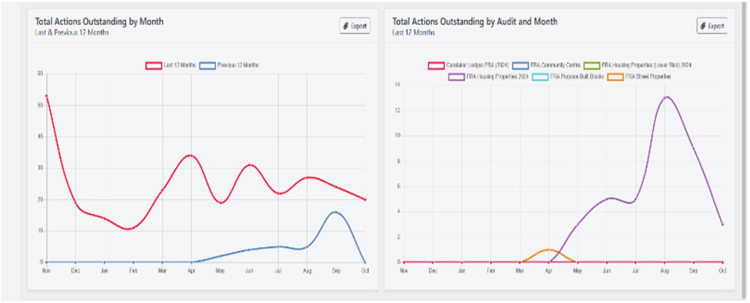 Interactive graphs provide clear comparisons of outstanding actions across current and previous years, as well as insights into actions linked to specific audits.