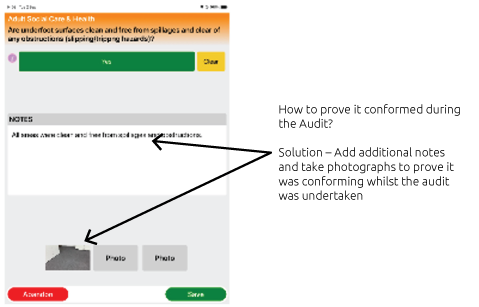 Add photos & Notes as proof that criteria conformed during the audit.