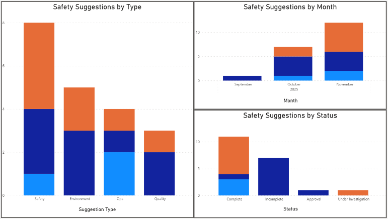 The important aspect of safety ideas is to recognise them and feedback to the person who gave the idea. This promotes more enthusiasm to the employees that what they are recommending is being taken seriously.